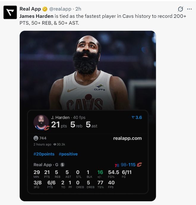 在场9胜2负阿帅赞不绝口!哈登一战创6纪录显高情商 骑士换他赢麻