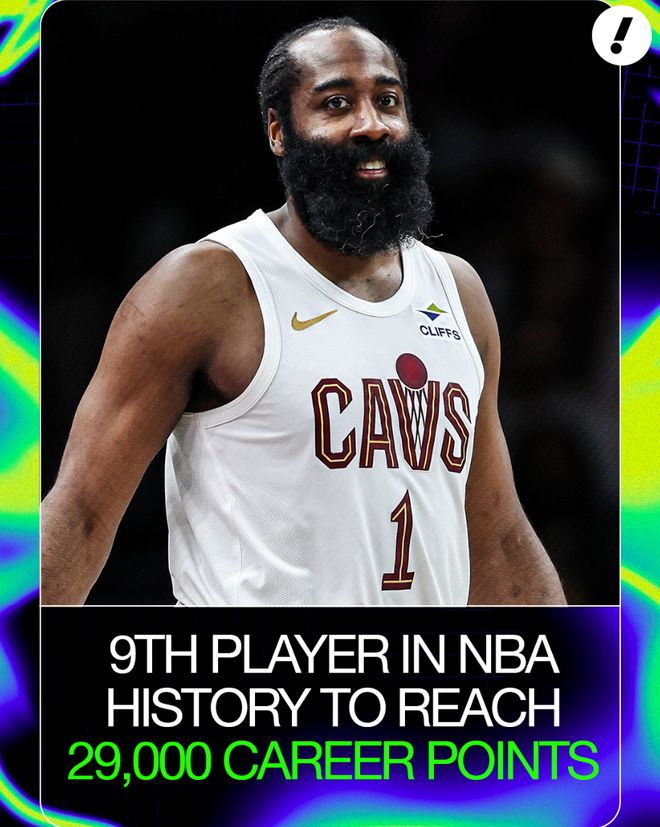 这场比赛后哈登又一战创造多项纪录:1.完成生涯29000分里程碑;