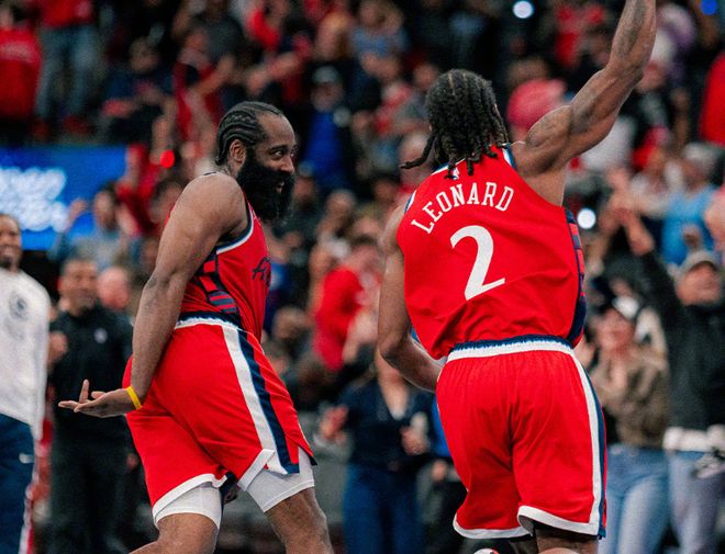 什么意思,又到了猜谜环节?本赛季伦纳德出战的6场比赛,场均24.3分5.7篮板3.5助攻,三项命中率是50%+40%+96%,确实非常漂亮了。但进阶数据很难看:伦纳德在场时,快船百回合输对手10.7分;他不在场时,快船百回合赢对手21.4分;On-Off值是-32.1!造成这种局面的原因有两个,第一,泰伦卢本质上让哈登+保罗无缝衔接填满48分钟,由于比尔表现低于预期,泰伦卢让小卡带第二阵容,高阶效率被拖下水。第二,小卡在四号位置上,对抗吃紧(他减重不少,是为了缓解膝盖压力),而本赛季,小卡减少了突破,大部分以投射为主。